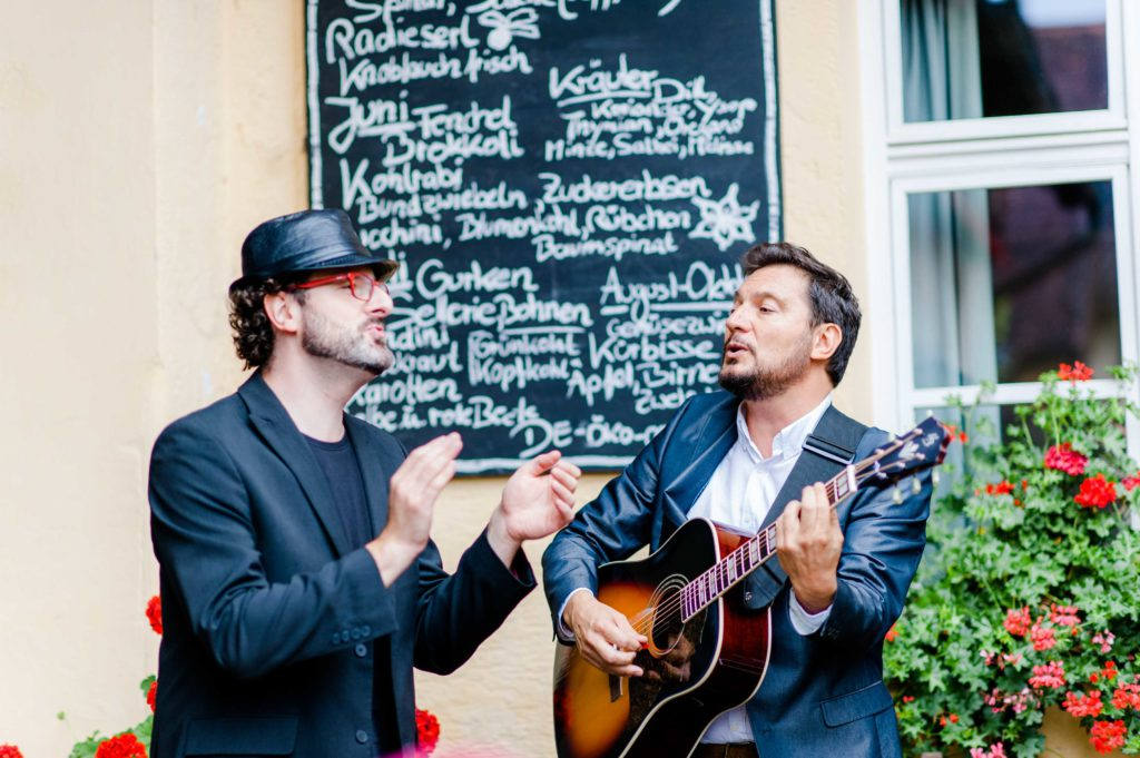 Die Italo-Künstler Art und Max Martini bringen das Publikum mit internationaler Lounge Musik und Jazzversionen von Italo-Hits in einen New Yorker Club Groove.